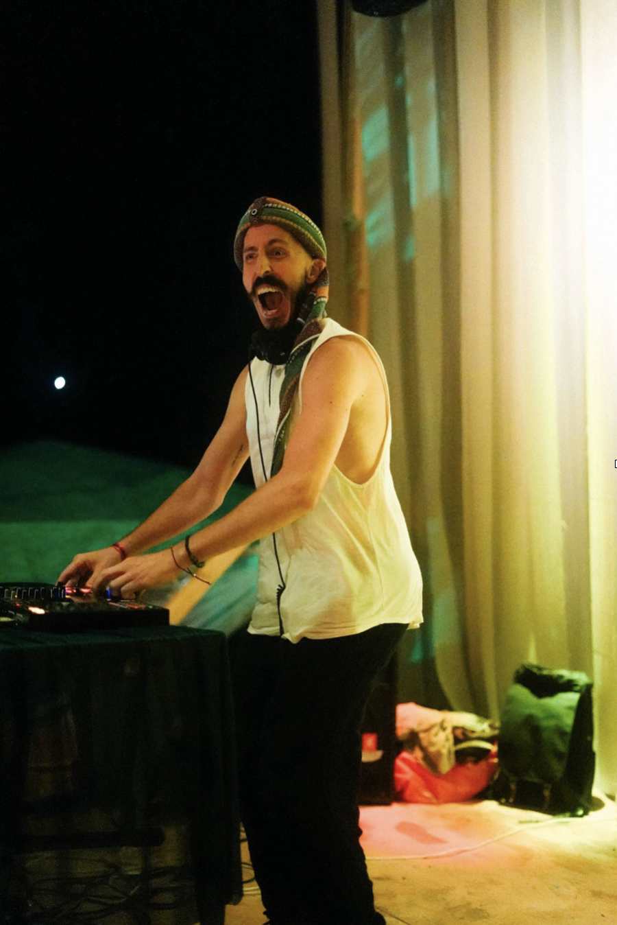 His sets unfold as a wave of frequencies, tribal rhythms, and organic textures, at times incorporating live looping and multi-instrumental expression, while holding a space where people can safely explore both light and shadow, moving through expansion, grounding, and transformation.